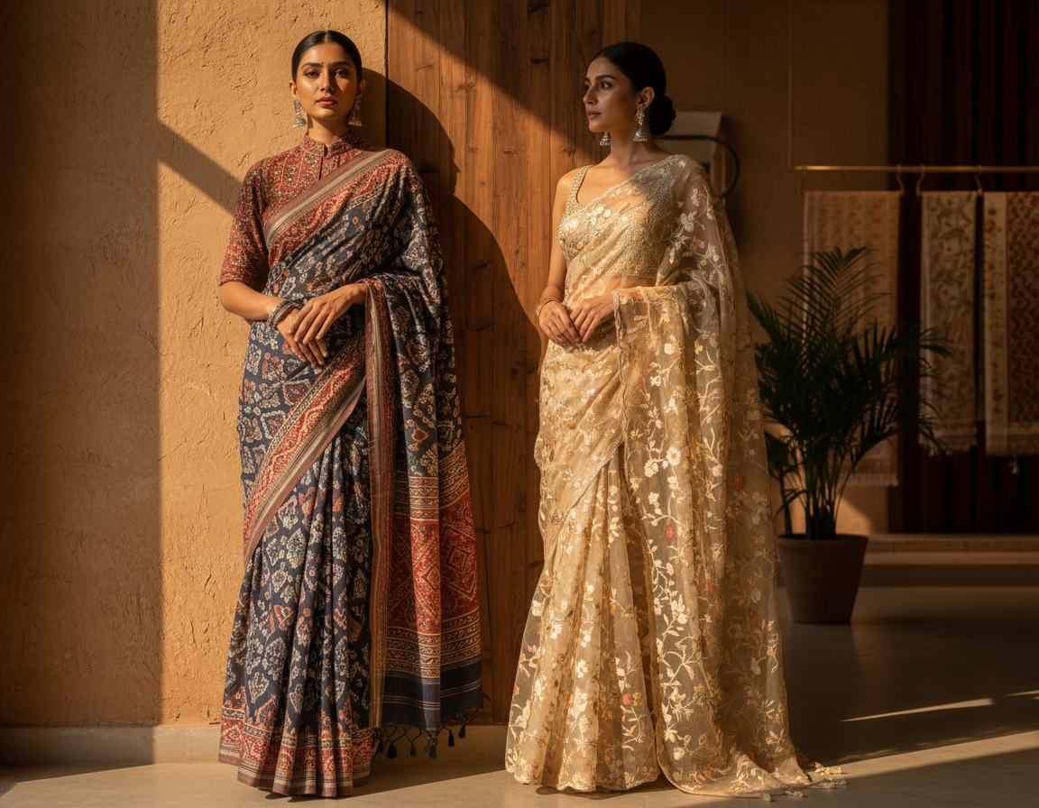 Founded with a passion to preserve India’s textile heritage while embracing contemporary design, we create handcrafted sarees and custom-fitted blouses that blend comfort, culture, and confidence.